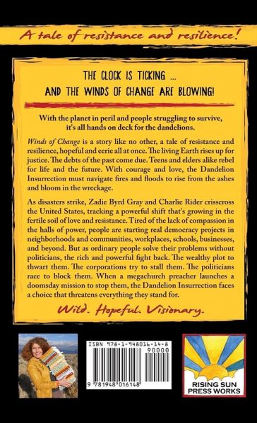 The clock is ticking . . . and the winds of change are blowing! With the planet in peril and people struggling to survive, it's all hands on deck for the Dandelion Insurrection. As natural - and human-made - disasters strike, the dandelions organize creative solutions all across the country: people-powered relief efforts, mutual aid groups, cooperative programs, community-wide potlucks, tool sharing, resilience plans, and more. Zadie Byrd Gray and Charlie Rider crisscross the United States, tracking down these hopeful and inspiring stories. Before long, a powerful shift starts growing in this fertile soil of love and resistance. Fed up with the lack of compassion in the halls of power, the dandelions launch real democracy projects in neighborhoods and communities, workplaces, schools, businesses, social clubs, and beyond. But as ordinary people solve their problems without politicians, the rich and powerful fight back. The wealthy plot to thwart them. The corporations try to stall them. The politicians race to block them. When a megachurch preacher launches a doomsday mission to stop them, the Dandelion Insurrection faces a choice that threatens everything they stand for. Winds of Change is a story like no other, a tale of resistance and resilience, hopeful and eerie all at once. The living Earth rises up for justice. The debts of the past come due. Teens and elders alike rebel for life and the future. With courage and love, the Dandelion Insurrection must navigate fires and floods to rise from the ashes and bloom in the wreckage. But they must act swiftly, for the clock is ticking . . . and the winds of change are blowing! Hopeful. Visionary. Inspiring. This is the story you've been waiting for - a story that speaks straight to the heart of these wild times we're living through. Each novel in the Dandelion Trilogy is a stand-alone story. They can be enjoyed in any order, but you'll want to read them all! Pick up your trilogy today! Also, don't miss the accompanying study guide to making change and Rise & Resist, the collection of fiery essays that Charlie Rider writes to rally the people for change. Welcome to the Dandelion Insurrection! Praise For Winds of Change "The Dandelion Trilogy comes to a stunning conclusion with non-stop action and a cavalcade of exciting ideas for transforming society." - Burt Kempner, author and filmmaker "Winds of Change really pulls the series together as an instructive allegory of what continued activism for nonviolent change can look like. It makes it look not-so-hard to live a life dedicated to meaningful community action and change!" - Seán P. Duffy, Executive Director, Albert Schweitzer Institute, Quinnipiac University "Eloquent, visionary and accessible, this book energizes and expands upon the epic stories told throughout the Dandelion Trilogy. It encourages us to realize that revolution is not the end of conflict, but the beginning of a messy, communal voyage towards justice." - Susie Beiersdorfer, National Community Rights Network "This novel lets us imagine what is possible in our work for peace with justice." - Patrick Hiller, War Prevention Initiative