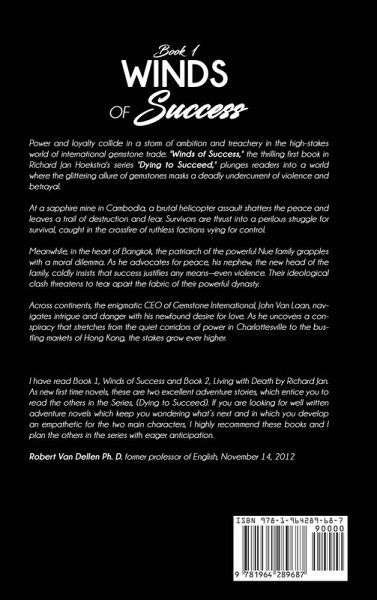 Power and loyalty collide in a storm of ambition and treachery in the high-stakes world of international gemstone trade. "Winds of Success," the thrilling first book in Richard Jan Hoekstra's series "Dying to Succeed," plunges readers into a world where the glittering allure of gemstones masks a deadly undercurrent of violence and betrayal.At a sapphire mine in Cambodia, a brutal helicopter assault shatters the peace and leaves a trail of destruction and fear. Survivors are thrust into a perilous struggle for survival, caught in the crossfire of ruthless factions vying for control.Meanwhile, in the heart of Bangkok, the patriarch of the powerful Nue family grapples with a moral dilemma. As he advocates for peace, his nephew, the new head of the family, coldly insists that success justifies any means-even violence. Their ideological clash threatens to tear apart the fabric of their powerful dynasty.Across continents, the enigmatic CEO of Gemstone International, John Van Laan, navigates intrigue and danger. As he uncovers a conspiracy that stretches from the quiet corridors of power in Charlottesville to the bustling markets of Hong Kong, the stakes grow ever higher.¿