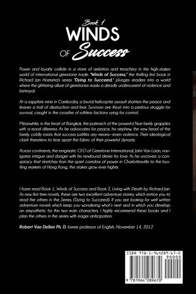 Power and loyalty collide in a storm of ambition and treachery in the high-stakes world of international gemstone trade. "Winds of Success," the thrilling first book in Richard Jan Hoekstra's series "Dying to Succeed," plunges readers into a world where the glittering allure of gemstones masks a deadly undercurrent of violence and betrayal.At a sapphire mine in Cambodia, a brutal helicopter assault shatters the peace and leaves a trail of destruction and fear. Survivors are thrust into a perilous struggle for survival, caught in the crossfire of ruthless factions vying for control.Meanwhile, in the heart of Bangkok, the patriarch of the powerful Nue family grapples with a moral dilemma. As he advocates for peace, his nephew, the new head of the family, coldly insists that success justifies any means-even violence. Their ideological clash threatens to tear apart the fabric of their powerful dynasty.Across continents, the enigmatic CEO of Gemstone International, John Van Laan, navigates intrigue and danger. As he uncovers a conspiracy that stretches from the quiet corridors of power in Charlottesville to the bustling markets of Hong Kong, the stakes grow ever higher.