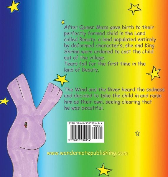 This is the English Version - After Queen Maza gave birth to her perfectly formed child in the Land called Beauty, a land populated entirely be deformed characters, she and King Shrine were ordered to cast the child out of the village. Tears fall for the first time in the land of Beauty. The Wind and the River took the child in and raised him as their own. They taught him all they could, yet realized one so destined needed more than they could ever impart. They named him Windter and took him to the Great Tree to learn his final lesson, the lesson of LAST. Windter climbed to the highest point of the Great Tree. He sat above the world, wide eyed, and he understood how best to care for our Winds, our Waters and our Lands. So begins the new adventures of Windter, a fable showing us how to care for our earth and how beauty is only in the eyes of the beholder. And Yes! that you too, are so beautiful.