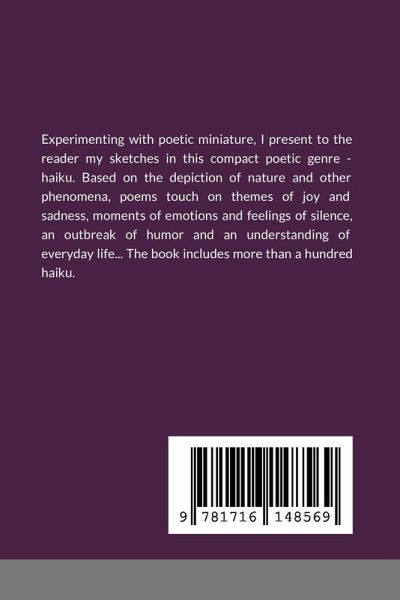 Experimenting with poetic miniature, I present to the reader my sketches in this compact poetic genre - haiku. Based on the depiction of nature and other phenomena, poems touch on themes of joy and sadness, moments of emotions and feelings of silence, an outbreak of humor and an understanding of everyday life... The book includes more than a hundred haiku.