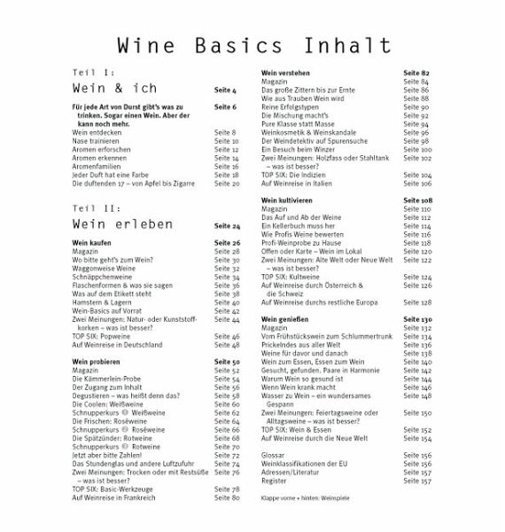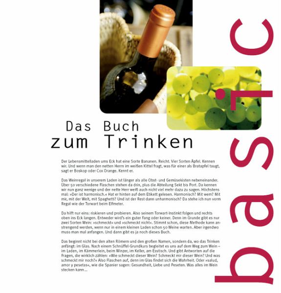 Die fröhlich-freche Optik des Covers sagt es auf einen Blick - wir haben ein Basic-Buch vor uns! Entsprechend ist auch das Layout und der Inhalt auf die erfolgreiche Ratgeber-Reihe des GU-Verlages abgestimmt. Doch nicht nur Basic-Fans kommen auf ihre Kosten - dieses unkonventionell gestaltete Weinbuch liefert wertvolles Weinwissen für jeden, der Wert auf Qualität und Geschmack legt.