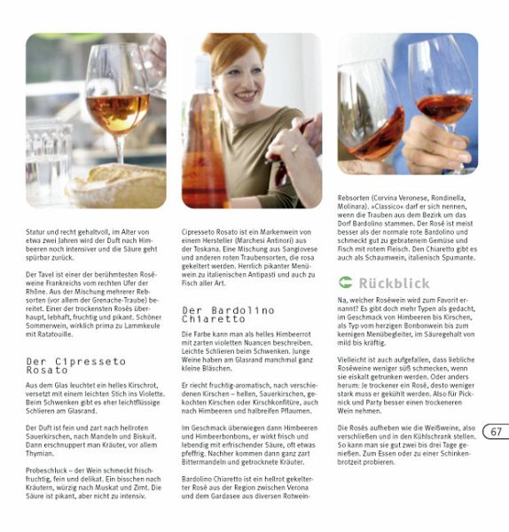 Das Buch ist in zwei große Abschnitte gegliedert, "Wein & ich", gefolgt von dem großen Kapitel "Wein erleben". Probieren geht über studieren - gemäß diesem Motto steht in "Wein & ich" alles Wissenswerte rund um die Weinprobe im Mittelpunkt.