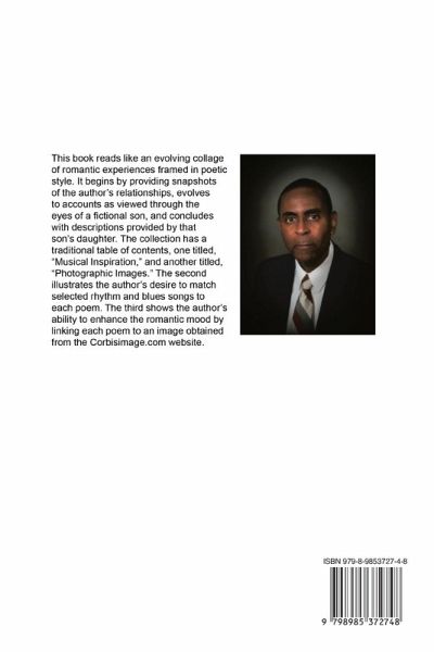 Wine Me, Dine Me, Dance Me, Romance Me, reads like an evolving collage of romantic experiences framed in poetic style. In many ways, the collection represents an autobiographical sketch in romance. It begins by providing snapshots of Gene Hewett's early relationships, evolves to romantic accounts as viewed through the eyes of a fictional son, and concludes with romantic descriptions provided by that son's daughter. The collection has a traditional table of contents, a second one, titled "Musical Inspiration" (which includes QR codes) and a third, titled "Photographic Images." The second table of contents illustrates the author's desire to match specific songs, the majority of which are rhythm and blues, such as "Ain't No Way," to each poem. In the short run, the author envisions that the collection will be made available in electronic form, as a paperback, and for hardcover distribution. In addition, owing to the musical theme, the author anticipates that the collection can be presented in audiobook form. In the long run, the author anticipates that it may be possible to package the collection in a stage-production format (complete with a speaker, background music, and PowerPoint images-with optional dance choreography). The third table of contents shows the author's ability to enhance the spirit and mood of each poem by linking them to a digital image obtained from the istockphoto.com or corbisimage.com websites. The majority of the digital images were based upon floral themes, such as "Close-Up View of a Pink Rose" and landscape themes such as "Wildflowers at Malibu Beach." Several digital image selections, such as "Glass of Wine with Cork and Rosebuds," departed from the floral and landscape patterns in order to further highlight a unique mood.