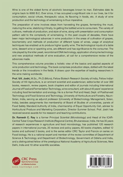 Prof. V.K. Joshi, M.Sc., Ph.D (Micro), Fellow Biotech Research Society of India, Fellow Indian Society of Hill Agriculture, is an eminent scientist and academician; editor/co-editor writer of over 300 publications including books, research, review papers, book chapters and editor of journals including International Journal of Food and Fermentation Technology is a wine consultant, with about 40 years' experience including food fermentation and oenology. He is a former Prof and Head, Dept. of Postharvest Technology and later Food Science and Technology, University of Horticulture and Forestry, Nauni-Solan, India, serving as an adjunct professor (University of Biotechnology Management, Solan, India), besides assignments like membership of Board of Studies of universities, panels of Food Safety Standard Authority of India, chairmanship of Equal Opportunity Cell, adviser to Horticultural Produce and Marketing Corporation, Director Summer School. Prof. Joshi has received several awards for his research and teaching contributions. Dr. Ramesh C. Ray is a former Principal Scientist (Microbiology) and Head of the ICAR- Central Tuber Crops Research Institute (Regional Centre), Bhubaneswar, India. He has 35 years of research experiences in agriculture and food microbiology, has published 120 research papers in international journals, 20 reviews and policy papers, 60 books chapters, edited 12 books and authored 3 books, and is the series editor CRC Taylor and Francis on series on Food biology. He is a national expert and member of the review committee of Department of Science & Technology and Department of Biotechnology, Government of Odisha and India, and a distinguished fellow of the prestigious National Academy of Agricultural Sciences, New Delhi, India and 10 other scientific societies.