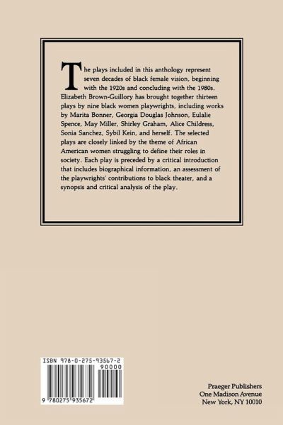 For those whose familiarity with black women playwrights is limited to the works of Lorraine Hansberry and Ntozake Shange, this collection of 15 plays written between 1925 and 1985 by eight authors will be a revelation. They express a passionate longing for social justice and for a stable, nurturing relationship between black men and women. Introductions for each author provide biographical information and critical analyses. A useful bibliography of plays and secondary sources is also included. This anthology helps to fill a serious gap in the standard histories of American drama. Library…mehr