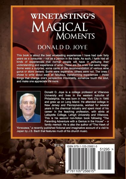 This is a book about the outstanding wines I have had in forty years of winetasting as a consumer, not as a person of the trade. It is nonfiction and intended for the wine appreciator and those interested in knowing more about wine and the great experiences it can provide.
