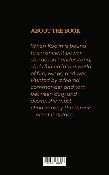 My book, Wingbound, is a romantasy (romantic fantasy) novel about identity, forbidden power, and the fire that awakens when fate chooses someone who's never been seen.It follows Kaelrin, an orphan girl raised on the edges of an empire that values lineage, power, and control. She expects nothing from life - and is given even less - until the day the ancient Bondstone unexpectedly chooses her. In a sacred ceremony meant to pair elite warriors with their fated magical partners, Kaelrin is shockingly bound to Commander Thorne Valis, the empire's most feared and revered warrior.This bond is illegal, impossible, and dangerous - yet unbreakable.Now forced into a world of politics, war, and ruthless expectations, Kaelrin must hide the truth of her fire-born powers, confront the mysterious force growing inside her, and survive the brutal trials that come with being Thorne's match. Thorne, meanwhile, must navigate a bond he didn't ask for - one that threatens to unravel both his control and his loyalty to the crown.At its core, Wingbound is about two broken souls bound by fate and fire, learning to trust, to fight, and ultimately... to burn the rules that caged them.
