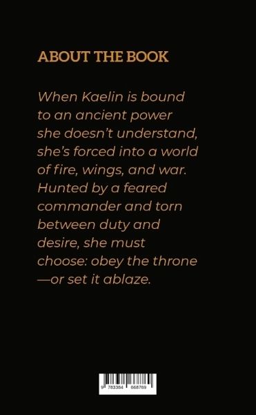 My book, Wingbound, is a romantasy (romantic fantasy) novel about identity, forbidden power, and the fire that awakens when fate chooses someone who's never been seen.It follows Kaelrin, an orphan girl raised on the edges of an empire that values lineage, power, and control. She expects nothing from life - and is given even less - until the day the ancient Bondstone unexpectedly chooses her. In a sacred ceremony meant to pair elite warriors with their fated magical partners, Kaelrin is shockingly bound to Commander Thorne Valis, the empire's most feared and revered warrior.This bond is illegal, impossible, and dangerous - yet unbreakable.Now forced into a world of politics, war, and ruthless expectations, Kaelrin must hide the truth of her fire-born powers, confront the mysterious force growing inside her, and survive the brutal trials that come with being Thorne's match. Thorne, meanwhile, must navigate a bond he didn't ask for - one that threatens to unravel both his control and his loyalty to the crown.At its core, Wingbound is about two broken souls bound by fate and fire, learning to trust, to fight, and ultimately... to burn the rules that caged them.