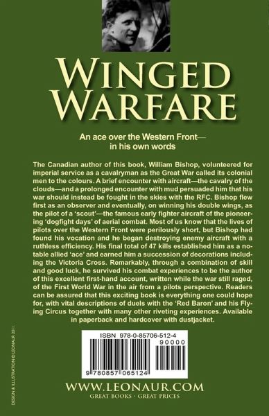 An ace over the Western Front-in his own words The Canadian author of this book, William Bishop, volunteered for imperial service as a cavalryman as the Great War called its colonial men to the colours. A brief encounter with aircraft-the cavalry of the clouds-and a prolonged encounter with mud persuaded him that his war should instead be fought in the skies with the RFC. Bishop flew first as an observer and eventually, on winning his double wings, as the pilot of a 'scout'-the famous early fighter aircraft of the pioneering 'dogfight days' of aerial combat. Most of us know that the lives of pilots over the Western Front were perilously short, but Bishop had found his vocation and he began destroying enemy aircraft with a ruthless efficiency. His final total of 47 kills established him as a notable allied 'ace' and earned him a succession of decorations including the Victoria Cross. Remarkably, through a combination of skill and good luck, he survived his combat experiences to be the author of this excellent first-hand account, written while the war still raged, of the First World War in the air from a pilots perspective. Readers can be assured that this exciting book is everything one could hope for, with vital descriptions of duels with the 'Red Baron' and his Flying Circus together with many other riveting experiences. Available in paperback and hardcover with dustjacket.