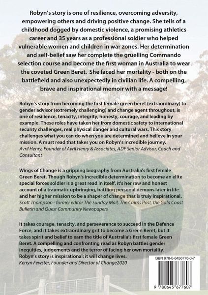 Robyn's story is one of resilience, overcoming adversity, empowering others and driving positive change. She tells of a childhood dogged by domestic violence; a promising athletics career; 35 years as a professional soldier who helped vulnerable women and children in war zones. Her determination and self-belief saw her complete the gruelling Commando selection course and become the first woman in Australia to wear the coveted Green Beret. She faced her mortality - both on the battlefield and also unexpectedly in civilian life. A compelling, brave and inspirational memoir with a message!
