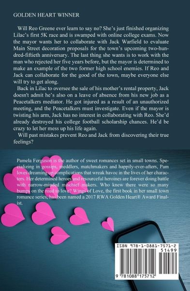 Take a trip to Lilac in this heartwarming small town romance novel. What was Lilac's mayor thinking, inviting Reo and Jack to volunteer together? There's no way Reo will work with the arrogant former athlete who made her life miserable. And Jack wants nothing to do with the gorgeous goody-two-shoes who destroyed his college football scholarship chances. When Reo and Jack discover they're the only two people in Lilac with the angel app on their phones, they agree to do one more good deed. Can they pretend to get along for the good of the town and find a way back into each other's hearts? Winner of the Romance Writers of America Golden Heart© Award.