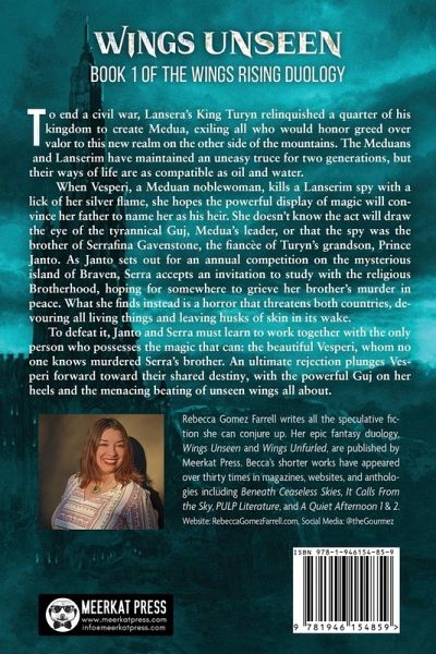 Rebecca Gomez Farrell refuses to say "Bloody Mary" three times into a mirror, though she'll write stories about the people who do. She lives in California's East Bay with her tech wizard husband and two feline coworkers. Her epic fantasy duology, which includes Wings Unseen and Wings Unfurled, is published by Meerkat Press. Becca's shorter works have appeared over thirty times in magazines, websites, and anthologies including Beneath Ceaseless Skies, It Calls From the Sky, PULP Literature, and A Quiet Afternoon 1 & 2.