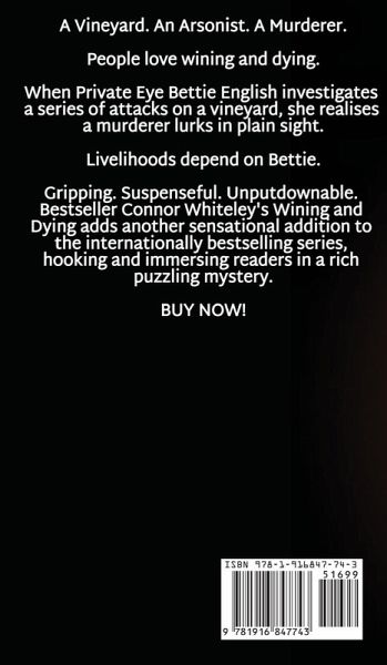 A Vineyard. An Arsonist. A Murderer. People love wining and dying. When Private Eye Bettie English investigates a series of attacks on a vineyard, she realises a murderer lurks in plain sight. Livelihoods depend on Bettie. Gripping. Suspenseful. Unputdownable. Bestseller Connor Whiteley's Wining and Dying adds another sensational addition to the internationally bestselling series, hooking and immersing readers in a rich puzzling mystery. BUY NOW!
