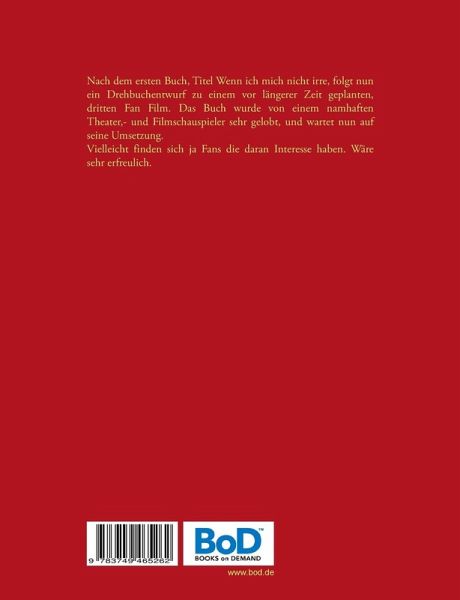 Nach dem ersten Buch mit dem Titel Wenn ich mich nicht irre, folgt nun ein Drehbuchentwurf zu einem vor längerer Zeit geplanten, dritten Fan-Film. Das Buch wurde von einem namhaften Theater- und Filmschauspieler sehr gelobt, und wartet nun auf seine Umsetzung.Vielleicht finden sich ja Fans die daran Interesse haben. Wäre sehr erfreulich.