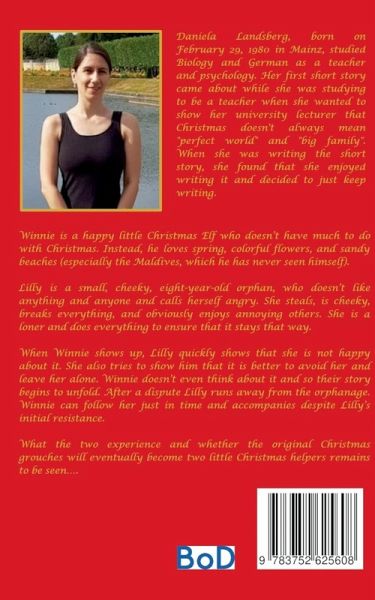 Winnie is a happy little Christmas elf who doesn't have much to do with Christmas. Instead, he loves spring, colorful flowers, and sandy beaches (especially the Maldives, which he has never seen himself). While the other elves are busy with the Christmas preparations, Winnie prefers to sing spring songs, paint pictures of the beach, and decorate his room with colorful confetti flowers and Hawaiian flower necklaces. Feeling frequently frustrated by Winnie, Santa feels it is time to give Winnie a new job. Winnie is assigned to bring Christmas closer to an orphan who doesn't like anything about Christmas. As expected, Winnie is initially indignant about playing babysitter to a little girl, but after a brief thought, he agrees.Lilly is a small, cheeky, eight-year-old orphan, who doesn't like anything and anyone and calls herself angry. She steals, is cheeky, breaks everything, and obviously enjoys annoying others. She is a loner and does everything to ensure that it stays that way. The other children are afraid of her and try to avoid her as best they can. When Winnie shows up, Lilly quickly shows that she is not happy about it. She also tries to show him that it is better to avoid her and leave her alone. Winnie doesn't even think about it and so their story begins to unfold. After a dispute Lilly runs away from the orphanage. Winnie can follow her just in time and accompanies despite Lilly's initial resistance.Together they experience an emotional day with many important lessons. With Winnie and Lilly, the readers meets a wide variety of people who change the way they think, act, and feel. Lilly also later learns the real reason why she is in the orphanage, and it changes her tremendously.What the two experience and whether the original Christmas grouches will eventually become two little Christmas helpers remains to be seen....