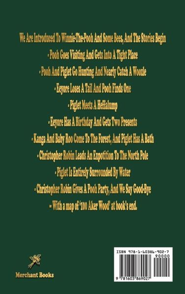 An unabridged edition of A. A. Milne Classic, Winnie-the-Pooh, with over 110 original illustrations by Ernest Shepard, to include: We Are Introduced To Winnie-The-Pooh And Some Bees, And The Stories Begin - Pooh Goes Visiting And Gets Into A Tight Place - Pooh And Piglet Go Hunting And Nearly Catch A Woozle - Eeyore Loses A Tail And Pooh Finds One - Piglet Meets A Heffalump - Eeyore Has A Birthday And Gets Two Presents - Kanga And Baby Roo Come To The Forest, And Piglet Has A Bath - Christopher Robin Leads An Expotition To The North Pole - Piglet Is Entirely Surrounded By Water - Christopher Robin Gives A Pooh Party, And We Say Good-Bye - With a map of '100 Aker Wood' at book's end.