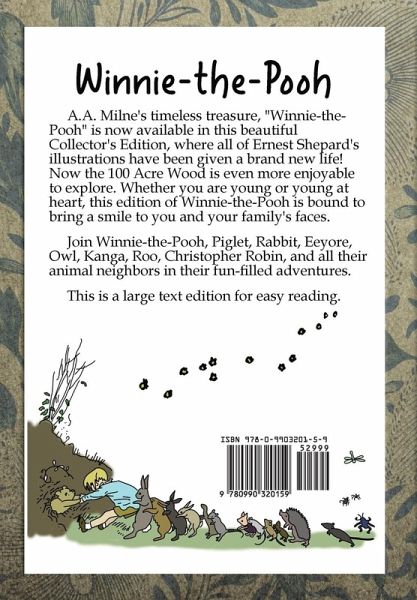 A.A. Milne's classic tale of "Winnie-the-Pooh" has been revitalized in this all-new Collector's Edition. Each decoration has been hand-drawn and colored, printed on heavy weight paper and premium inks. A treasure to pass down generations!