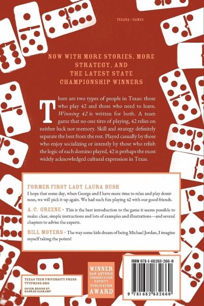 There are two types of people in Texas: those who play 42 and those who need to learn. Winning 42 is written for both. A team game that no one tires of, 42 does not rely mostly on luck or memory. Skill and strategy separate the best from the rest. Veterans who relish the logic of each domino played will find challenge in the advanced chapters and fascination in the history and lore. Many who've grown up with 42 are nonetheless surprised by its utterly Texan heritage, reaching back over a century and a quarter. Beginners will find easy instruction in all the basics, from bidding a hand or setting an opponent to the challenge of the 84 hand, and can advance at their own pace. Replete with championship statistics and stories from veteran players and strategists--including many celebrities from astronauts to presidents--Winning 42 illumines a cherished tradition that links Texans from all walks of life.