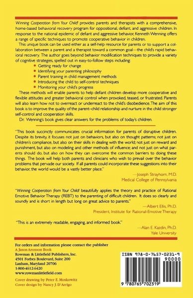 Winning Cooperation from Your Child provides parents and therapists with a comprehensive, home-based behavioral recovery program for oppositional, defiant, and aggressive children. In response to the national epidemic of defiant and aggressive behavior, Kenneth Wenning offers a range of specific techniques to promote cooperative behavior in children. This unique book can be used either as a self-help resource for parents or to support a collaboration between a parent and a therapist toward a common goal-a child's rapid behavioral recovery. These methods will enable parents to help defiant children develop "psychological armor" and behavioral and emotional control when provoked, teased, or frustrated as well as prevent parents from overreacting or underreacting to the child's disobedience. The aim is to nurture in the child the capacity for accurate self-reflection, a prerequisite for taking responsibility for his or her own actions.