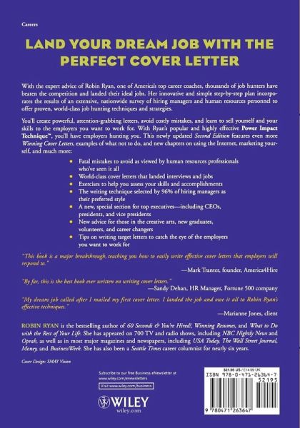 "My dream job called after I mailed my first cover letter. I landed the job and owe it all to Robin Ryan s effective techniques."