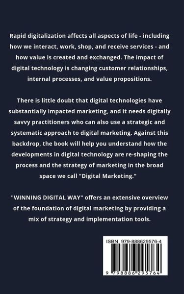 Rapid digitalization affects all aspects of life - including how we interact, work, shop, and receive services - and how value is created and exchanged. The impact of digital technology is changing customer relationships, internal processes, and value propositions. There is little doubt that digital technologies have substantially impacted marketing, and it needs digitally savvy practitioners who can also use a strategic and systematic approach to digital marketing. Against this backdrop, the book will help you understand how the developments in digital technology are re-shaping the process and the strategy of marketing in the broad space we call ""Digital Marketing."" ""WINNING DIGITAL WAY"" offers an extensive overview of the foundation of digital marketing by providing a mix of strategy and implementation tools.