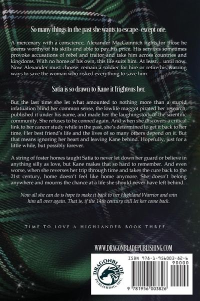 So many things in the past she wants to escape-except one. Satia St. Clair, a street smart, socially aloof, microbiologist, is literally immersed in her research at a Highland loch when a crumbling ledge tosses her into its murky depths without her diving gear. The last thing she expects is for a 14th century Scottish warlord to pull her to safety. Not only does he save her, but Kane Macpherson half believes her to be a faerie queen. After all, myth and folklore surround An Lochan Uaine. But even when common sense wins out, something about the beguiling lass demands she be treated like the special woman he instinctively knows she is. And he swears to protect her from anyone or anything. Which could be a problem when she makes the mistake of sharing her otherworldly knowledge of events yet to happen, and it gets back to his liege, Robert the Bruce. Kane soon realizes the greatest danger to Satia is herself. He's in peril, too. Or at least, his heart is. Fae queen or not, this green-eyed beauty not only possesses the second sight, but the power to capture a man's heart and soul without even realizing it. Satia is so drawn to Kane it frightens her. But the last time she let what amounted to nothing more than a stupid infatuation blind her common sense, the lowlife maggot pirated her research, published it under his name, and made her the laughingstock of the scientific community. She refuses to be conned again. And when she discovers a critical link to her cancer study while in the past, she's determined to get it back to her time. Her best friend's life and the lives of so many others depend on it. But that means ignoring her heart and leaving Kane behind. Hopefully, just for a little while, but possibly forever. A string of foster homes taught Satia to never let down her guard or believe in anything silly as love, but Kane makes that so hard to remember. And even worse, when she reverses her trip through time and takes the cure back to the 21st century, home doesn't feel like home anymore. She doesn't belong anywhere and mourns the chance at a life she should never have left behind. Now all she can do is hope to make it back to her Highland Warrior and win him all over again. That is, if the 14th century will let her come back. Time to Love a Highlander Book 1 - Loving Her Highland Thief Book 2 - Taming Her Highland Legend Book 3 - Winning Her Highland Warrior Book 4 - Capturing Her Highland Keeper Book 5 - Saving Her Highland Traitor Book 6 - Loving Her Lonely Highlander Book 7 - Delighting Her Highland Devil