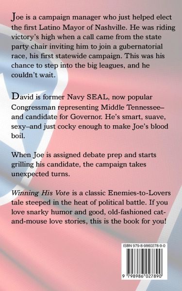 Joe is a campaign manager who just helped elect the first Latino Mayor of Nashville. He was riding victory's high when a call came from the state party chair inviting him to join a gubernatorial race, his first statewide campaign. This was his chance to step into the big leagues, and he couldn't wait. David is former Navy SEAL, now popular Congressman representing Middle Tennessee-and candidate for Governor. He's smart, suave, sexy-and just cocky enough to make Joe's blood boil. When Joe is assigned debate prep and starts grilling his candidate, the campaign takes unexpected turns. Winning His Vote is a classic Enemies-to-Lovers tale steeped in the heat of political battle. If you love snarky humor and good, old-fashioned cat-and-mouse love stories, this is the book for you!