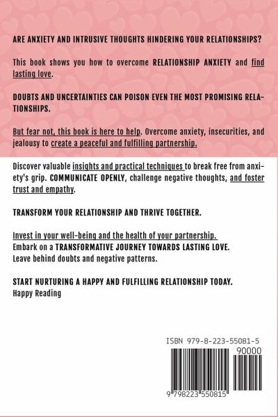 Are you tired of struggling to maintain healthy and long-lasting relationships due to anxiety disorders? Do intrusive thoughts about your future constantly hinder your relationships? If you long to understand your partner and live peacefully without obsessing over every little thing, then this book is for you. We present "Winning Insecurity: Overcoming Anxiety in Relationships". Within its pages lies the key to conquering anxiety, insecurities, and jealousy, allowing you to cultivate a loving and harmonious relationship. Have you ever found yourself doubting a great relationship, questioning if your partner is truly right for you? These doubts can set off a downward spiral, causing your partner to become frustrated with your suspicious tendencies, negativity, and indecisiveness. This destructive cycle is known as relationship anxiety, and it has the power to unravel even the most promising bonds. But fear not because there is a way out. By reading this book, you have already taken the first step toward breaking free from the endless cycle of ruining relationships due to uncontrollable anxiety. Let's explore together. Discover the root causes of your insecurities and jealousy and understand why it's so difficult to overcome obsessive thoughts that poison your relationship. Ignoring these issues can lead to dire consequences, so it's crucial to act now. Within these pages, you'll find practical guidance to help you navigate your journey.Learn how to identify if your anxiety is standing in the way of your relationships. Uncover the strength of your fear of abandonment and gain the tools to conquer it. Overcome your insecurities and rebuild trust with your partner. Gain insights on how to support your loved one if they also suffer from relationship anxiety. Banish negative thoughts when they arise. Confront unhealthy attachment patterns head-on and develop strategies to foster trust as a couple. This book goes beyond theory. It offers practical steps to transform your relationships. Even if you've believed that lasting love is not meant for you, having experienced the pain of ruined relationships due to anxiety, this guide will restore your hope. It will guide you every step of the way, holding your hand as you embark on a journey of transformation. Now is the time to act and open the door to a brighter future. Allow your senses to be captivated as you envision a life free from anxiety and filled with love. Don't let this opportunity slip away. Take charge of your relationship's destiny. Start your transformation today.
