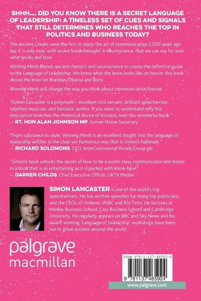 Shhh . Did you know there is a secret Language of Leadership: a timeless set of cues and signals that still determines who reaches the top in politics and business today. The ancient Greeks were the first to study the art of communication 2,500 years ago. It is only now, with recent breakthroughs in neuroscience, that we can say for sure what works and how. In Winning Minds, top speechwriter Simon Lancaster blends ancient rhetoric and neuroscience to create the definitive guide to the Language of Leadership. With trust in business and political leaders at record lows, there's never been a better time for a fresh perspective on communication. Winning Minds is packed with insights into the effects of metaphors, stories, and sound bites on the brain. We know what the brain looks like on heroin. This book shows the brain on Branson, Obama, and Boris.