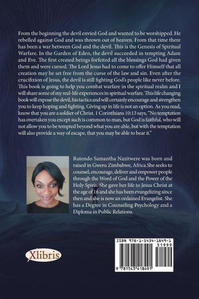From the beginning the devil envied God and wanted to be worshipped. He rebelled against God and was thrown out of heaven. From that time there has been a war between God and the devil. This is the Genesis of Spiritual Warfare. In the Garden of Eden, the devil succeeded in tempting Adam and Eve. The first created beings forfeited all the blessings God had given them and were cursed. The Lord Jesus had to come to offer Himself that all creation may be set free from the curse of the law and sin. Even after the crucifixion of Jesus, the devil is still fighting God's people like never before. This book is going to help you combat warfare in the spiritual realm and I will share some of my real-life experiences in spiritual warfare. This life changing book will expose the devil, his tactics and will certainly encourage and strengthen you to keep hoping and fighting. Giving up in life is not an option. As you read, know that you are a soldier of Christ. 1 Corinthians 10:13 says, "No temptation has overtaken you except such is common to man, but God is faithful, who will not allow you to be tempted beyond what you are able, but with the temptation will also provide a way of escape, that you may be able to bear it."