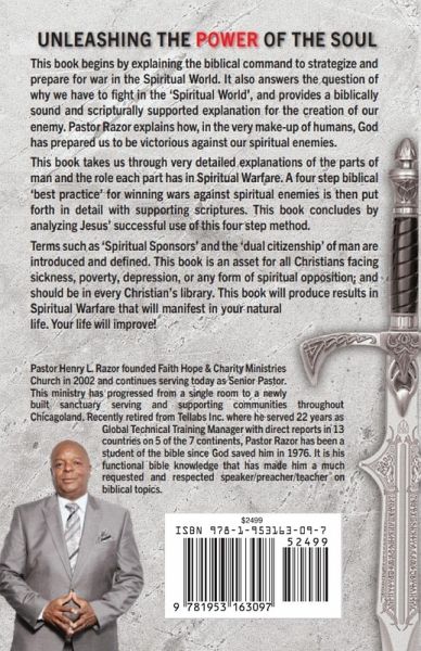 This book begins by explaining the biblical command to strategize and prepare for war in the Spiritual World. It also answers the question of why we have to fight in the 'Spiritual World', and provides a biblically sound and scripturally supported explanation for the creation of our enemy. Pastor Razor explains how, in the very make-up of humans, God has prepared us to be victorious against our spiritual enemies. This book takes us through very detailed explanations of the parts of man and the role each part has in Spiritual Warfare. A four-step biblical 'best practice' for winning wars against spiritual enemies is then put forth in detail with supporting scriptures. This book concludes by analyzing Jesus' successful use of this four-step method. Terms such as 'Spiritual Sponsors' and the 'dual citizenship' of man are introduced and defined. This book is an asset for all Christians facing sickness, poverty, depression, or any form of spiritual opposition; and should be in every Christian's library. This book will produce results in Spiritual Warfare that will manifest in your natural life. Your life will improve!