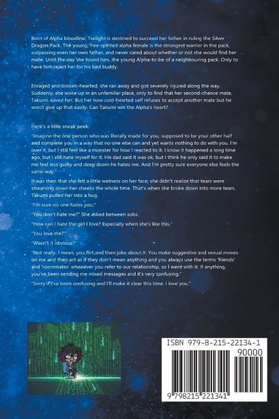 Born of Alpha bloodline, Twilight is destined to succeed her father in ruling the Silver Dragon Pack. The young, free-spirited alpha female is the strongest warrior in the pack, surpassing even her own father, and never cared about whether or not she would find her mate. Until the day she found him, the young Alpha-to-be of a neighbouring pack. Only to have him reject her for his bed buddy. Enraged and broken-hearted, she ran away and got severely injured along the way. Suddenly, she woke up in an unfamiliar place, only to find that her second-chance mate, Takumi, saved her. But her now cold-hearted self refuses to accept another mate but he won't give up that easily. Can Takumi win the Alpha's heart? Here's a little sneak peek: "Imagine the one person who was literally made for you, supposed to be your other half and complete you in a way that no one else can and yet wants nothing to do with you. I'm over it, but I still feel like a monster for how I reacted to it. I know it happened a long time ago, but I still hate myself for it. His dad said it was ok, but I think he only said it to make me feel less guilty and deep down he hates me. And I'm pretty sure everyone else feels the same way." It was then that she felt a little wetness on her face; she didn't realize that tears were streaming down her cheeks the whole time. That's when she broke down into more tears. Takumi pulled her into a hug. "I'm sure no one hates you." "You don't hate me?" She asked between sobs. "How can I hate the girl I love? Especially when she's like this." "You love me?" "Wasn't it obvious?" "Not really. I mean, you flirt and then joke about it. You make suggestive and sexual moves on me and then act as if they don't mean anything and you always use the terms 'friends' and 'roommates' whenever you refer to our relationship, so I went with it. If anything, you've been sending me mixed messages and it's very confusing." "Sorry if I've been confusing and I'll make it clear this time. I love you."