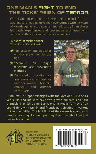 One Man's fight to end the ticks' reign of terror. With Lyme disease and other vector-borne illnesses on the rise, the demand for tick awareness is needed now more than ever. Armed with his years of knowledge as a top speaker and educator, Brian shares his battle experiences and prevention techniques with you. In Winning the War on Ticks you'll learn: ¿ About the enemy- Ticks ¿ Awareness of Lyme disease and other tick-born illnesses ¿ Proven combat methods for preventing tick bites ¿ Effective personal repellants ¿ What to do if bitten ¿ And more! This book is as an informative everyman's guide on ticks and tick-borne illnesses. It's not a scientific research paper, but something that is written simply and humorously to promote awareness on the topic. Who is Brian "The Tick Terminator" Anderson? ¿ Top speaker and educator on tick prevention in the USA ¿ Specialist on unique repellants and prevention methods ¿ Dedicated to providing tick awareness and support for outdoor workers, hunters, campers, and outdoor enthusiasts It's time to go to war on ticks! A must read for all outdoor enthusiasts, workers, or anyone who goes into the woods, especially those living or visiting the eastern US. Start winning your war on ticks today!