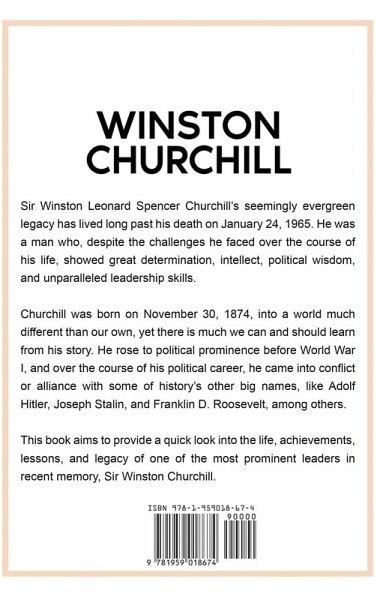 WINSTON CHURCHILL Sir Winston Leonard Spencer Churchill's seemingly evergreen legacy has lived long past his death on January 24, 1965. He was a man who, despite the challenges he faced over the course of his life, showed great determination, intellect, political wisdom, and unparalleled leadership skills. Churchill was born on November 30, 1874, into a world much different than our own, yet there is much we can and should learn from his story. He rose to political prominence before World War I, and over the course of his political career, he came into conflict or alliance with some of history's other big names, like Adolf Hitler, Joseph Stalin, and Franklin D. Roosevelt, among others. This book aims to provide a quick look into the life, achievements, lessons, and legacy of one of the most prominent leaders in recent memory, Sir Winston Churchill.