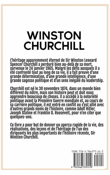 WINSTON CHURCHILL De sa carrière politique dynamique à son leadership résolu en temps de guerre, l'héritage de Sir Winston Churchill reste un phare brillant de résilience et de force. Ce livre vous emmène dans un voyage fascinant à travers la vie de l'une des figures les plus emblématiques du XXe siècle, mettant en lumière ses batailles, ses alliances et les moments cruciaux qui ont façonné l'histoire. Né à une époque très différente de la nôtre, Churchill a fait preuve de cran, de détermination et d'un courage inébranlable face à l'adversité. Il n'était pas seulement un leader, c'était un visionnaire qui a défié les obstacles et inspiré une nation à se dresser contre la tyrannie. Que vous soyez un passionné d'histoire ou un lecteur curieux désireux de comprendre l'esprit d'un véritable homme d'État, ce livre offre une exploration claire et concise de la vie de Churchill, de ses man¿uvres politiques et des leçons intemporelles qu'il a laissées derrière lui. Plongez dans l'histoire d'un homme qui a affronté les heures les plus sombres de la guerre avec des mots qui résonnent encore aujourd'hui.