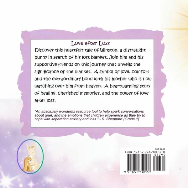 The Bond of Love after loss! The loss of a friend, family member, or pet can be devastating to a child. Dealing with grief can be difficult, as children do not understand how to mourn or begin the healing process. In this heartwarming story, Winston clings to a special blanket given to him by his beloved mother. This magical blanket is his source of comfort and security, during times of fear and uncertainty, a symbol of their unbreakable bond. But one day, disaster strikes, and Winston's cherished blanket goes missing, leaving him in a state of panic and despair. Spotting the distressed bunny, a team of compassionate and understanding animals joins him in his search without hesitation. Parents, educators, grief counselors, and psychologists agree that this children's book about grief and loss is a powerful tool to help children create their own special memories. Carrying similar messages such as The Invisible String, The Rabbit Listened, God Gave Us Heaven, and The Memory Box, children will have a better understanding of the special bond that can never be broken, even after a loss. This extraordinary keepsake gift is also a great conversation starter in class. Children can learn to empathize with those experiencing loss as well as think of creating their own memory box. With beautiful, colorful illustrations, this book is perfect for children aged 4 to 8 and a great tool for grief counselors, therapists, psychologists, parents, and teachers. Grab your copy of Winston's Forever Blanket today and discover the healing power of Love after Loss