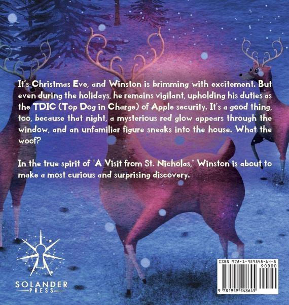 It's Christmas Eve, and Winston is brimming with excitement. But even during the holidays, he remains vigilant, upholding his duties as the TDIC (Top Dog in Charge) of Apple security. It's a good thing, too, because that night, a mysterious red glow appears through the window, and an unfamiliar figure sneaks into the house. What the woof? In the true spirit of "A Visit from St. Nicholas," Winston is about to make a most curious and surprising discovery.
