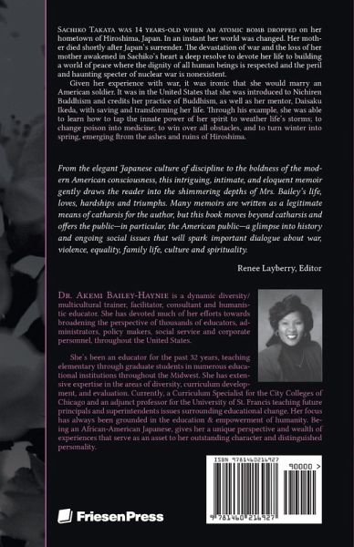 Sachiko Takata was 14 years-old when an atomic bomb dropped on her hometown of Hiroshima, Japan. In an instant her world was changed. Her mother died shortly after Japan's surrender. The devastation of war and the loss of her mother awakened in Sachiko's heart a deep resolve to devote her life to building a world of peace where the dignity of all human beings is respected and the peril and haunting specter of nuclear war is nonexistent. Given her experience with war, it was ironic that she would marry an American soldier, LeRoy Bailey. It was in the United States that she was introduced to…mehr