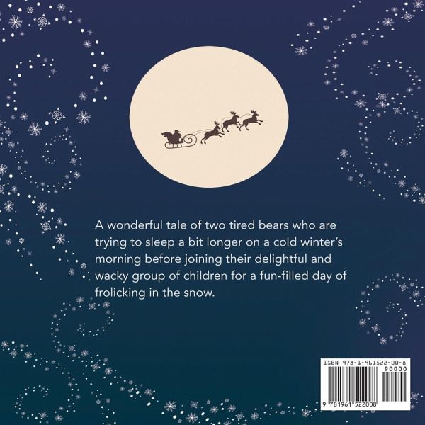 A heartwarming and delightful winter tale of two tired bear parents who are trying to get just a little bit of extra sleep before getting up to join their wonderful gang of wild and wacky children for a fun-filled day of frolicking in the snow. The gorgeous illustrations will whisk you into a wonderful winter land. But don't be fooled, this is a tale that will be appreciated throughout the entire year. Parents, teachers and guardians will easily identify with the bear parents and their gentle request for more rest, and children will be head over heels for the hilarious tale of kids gone wild in the early hours of the morning.