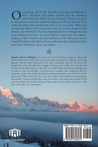 Overcoming all of the obstacles of being abandoned at birth, Elizabeth had gotten settled into the Montana ranch life with Allister as her husband. Things seemed to be near perfect until she realized nothing in life was perfect. New trials and adversities would now have to be overcome. What was wrong with Allister? He assured her that she was the woman of his dreams, but why had he become despondent? Even though she had never doubted his love, she must find the reason for his sadness. Adding to their troubles was the harshness of the Montana winter. Could Elizabeth and Allister's love withstand the tribulations they must face? And then, there was Adam........