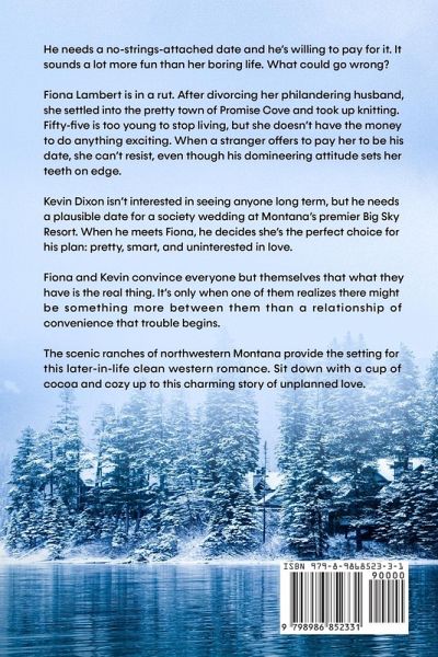 A driven Montana cattle rancher needs a no-strings-attached fake fiancée, and he's willing to pay. She'll play along to get back on her feet again. Fiona Lambert is almost broke. When a stranger offers her cash to be seen on his arm for a few months, she figures she can put up with his overbearing attitude to get a stake for a new start. She's got one condition: none of her Promise Cove friends can find out about it. Kevin Dixon needs to wrest back control of the valley's cattleman's association before the jerk who used to be his best friend drives it into the ground. At the same time he needs prove he isn't the ogre his ex portrays him to be and recover his reputation. When he meets Fiona, he decides she's the perfect choice for his plan: pretty, smart, and uninterested in love. She enjoys being seen with one of the most sought-after men in the valley; he laughs at her attempts to sand off his aggressive edges with affection. They're having fun, but it's a dangerous game of play-acting. The scenic ranches of northwestern Montana provide the setting for this later-in-life clean western romance. Sit down with a cup of cocoa and cozy up to this charming story of unplanned love.