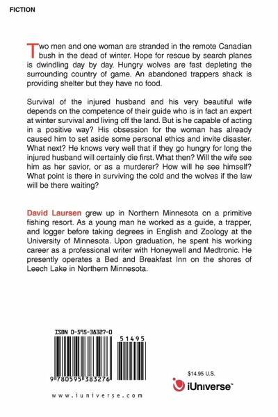 Two men and one woman are stranded in the remote Canadian bush in the dead of winter. Hope for rescue by search planes is dwindling day by day. Hungry wolves are fast depleting the surrounding country of game. An abandoned trappers shack is providing shelter but they have no food. Survival of the injured husband and his very beautiful wife depends on the competence of their guide who is in fact an expert at winter survival and living off the land. But is he capable of acting in a positive way? His obsession for the woman has already caused him to set aside some personal ethics and invite disaster. What next? He knows very well that if they go hungry for long the injured husband will certainly die first. What then? Will the wife see him as her savior, or as a murderer? How will he see himself? What point is there in surviving the cold and the wolves if the law will be there waiting?
