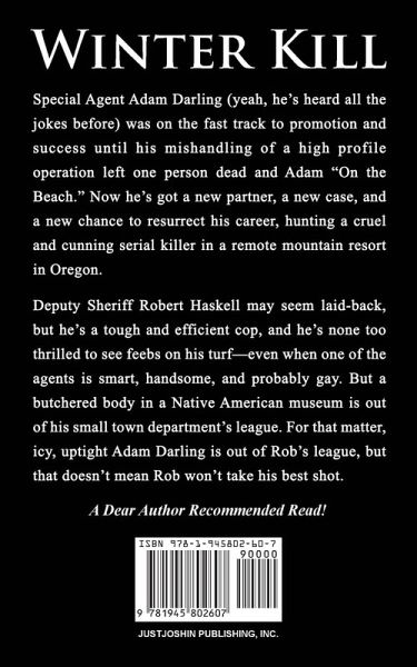 Clever and ambitious, Special Agent Adam Darling (yeah, he’s heard all the jokes before) was on the fast track to promotion and success until his mishandling of a high profile operation left one person dead and Adam "On the Beach." Now he’s got a new partner, a new case, and a new chance to resurrect his career, hunting a cruel and cunning serial killer in a remote mountain resort in Oregon. Deputy Sheriff Robert Haskell may seem laid-back, may even seem like a goofball, but that doesn’t mean he’s not a tough and efficient cop when he has to be. And Rob is none too thrilled to see feebs on his turf—even when one of the agents is smart, handsome, and probably gay. But a butchered body in a Native American museum is out of his small-town department’s league. For that matter, icy, uptight Adam Darling is out of Rob’s league, but that doesn’t mean Rob won’t take his best shot.
