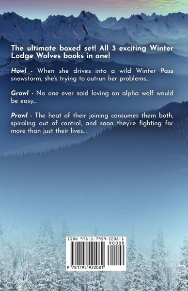 The ultimate boxed set! All 3 exciting Winter Lodge Wolves books in one! Howl- When she drives into a wild Winter Pass snowstorm, she's trying to outrun her problems... Growl- No one ever said loving an alpha wolf would be easy... Prowl- The heat of their joining consumes them both, spiraling out of control, and soon they're fighting for more than just their lives...