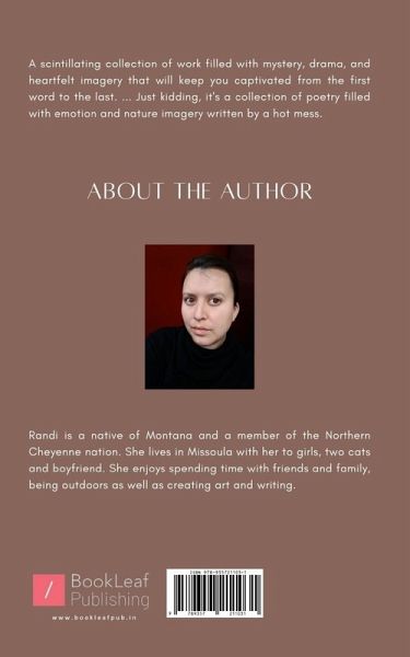 A scintillating collection of work filled with mystery, drama, and heartfelt imagery that will keep you captivated from the first word to the last. ... Just kidding, it's a collection of poetry filled with emotion and nature imagery written by a hot mess.