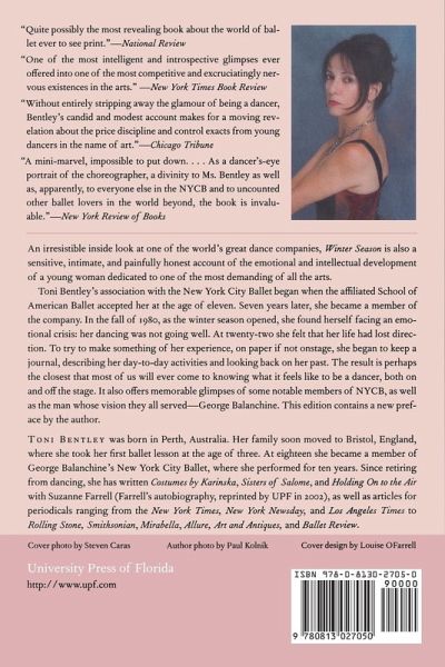 An inside look at the New York City Ballet, and an intimate account of the emotional and intellectual development of a young woman dedicated to a demanding art. Toni Bentley began this journal at the age of 22, describing her daily activities and looking back on her past.