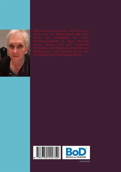 Winter-Sonnen-Wende, das sind Texte zum Winter und zur Weihnachtszeit, aber auch solche, die unabhängig von ihrem Entstehungszetpunkt in diese Jahreszeit passen, lyrische und auch Prosatexte; Persönliches und Projiziertes beschreibt und reflektiert diese wohl dichteste Zeit im Jahr, oft besinnlich, manchmal melancholisch.