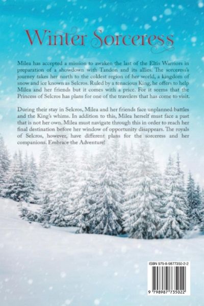 Milea has accepted a mission to awaken the last of the Eltis Warriors in preparation of a showdown with Tandon and its allies. the sorceress's journey takes her north to the coldest region of her world, a kingdom of snow and ice known as Slecros. Ruled by a tenacious King, he offers to help Milea and her friends but it comes with a price. During their stay in Selcros, they must face unplanned battles as well as the King and his whims. In addition, Milea herself must face a past that is not her own. The Sorceress of Selvast forest must navigate through these obstacles to reach her final destination before her window of opportunity disappears. The royals of Selcros, however, have different plans for Milea and her companions Embrace the Adventure!