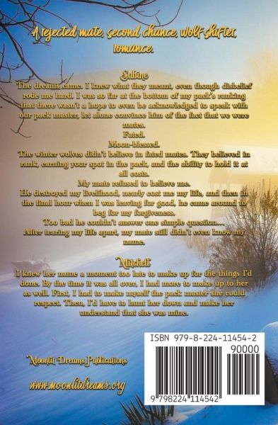 A rejected mate, second chance wolf shifter, standalone romance. Sabine The dreams came. I knew what they meant, even though disbelief rode me hard. I was so far at the bottom of my pack's ranking that there wasn't a hope to even be acknowledged to speak with our pack master, let alone convince him of the fact that we were mates. Fated. Moon-blessed. The winter wolves didn't believe in fated mates. They believed in rank, earning your spot in the pack, and the ability to hold it at all costs. My mate refused to believe me. He destroyed my livelihood, nearly cost me my life, and then in the final hour when I was leaving for good, he came around to beg for my forgiveness. Too bad he couldn't answer one simple question... After tearing my life apart, my mate still didn't even know my name. Mitchell I knew her name a moment too late to make up for the things I'd done. By the time it was all over, I had more to make up to her as well. First, I had to remake myself into a pack alpha she could respect. Then, I had to hunt her down and make her understand that she was mine.